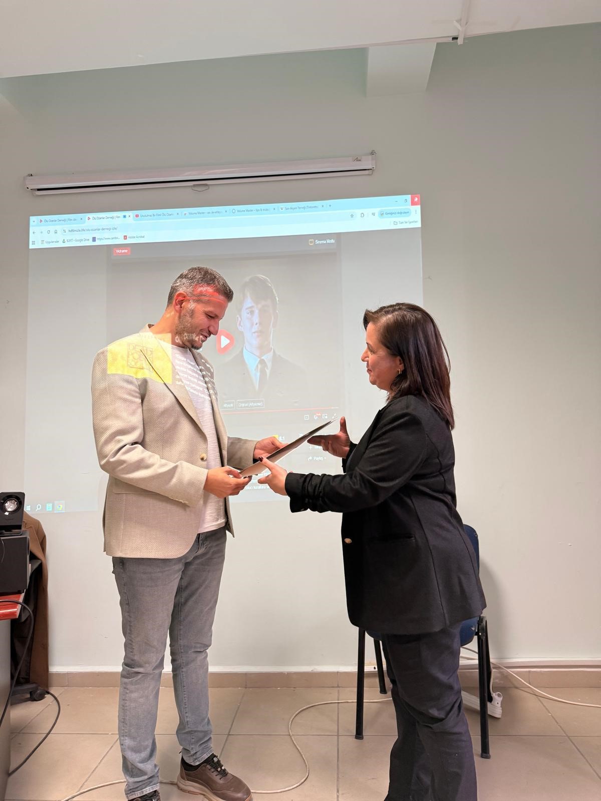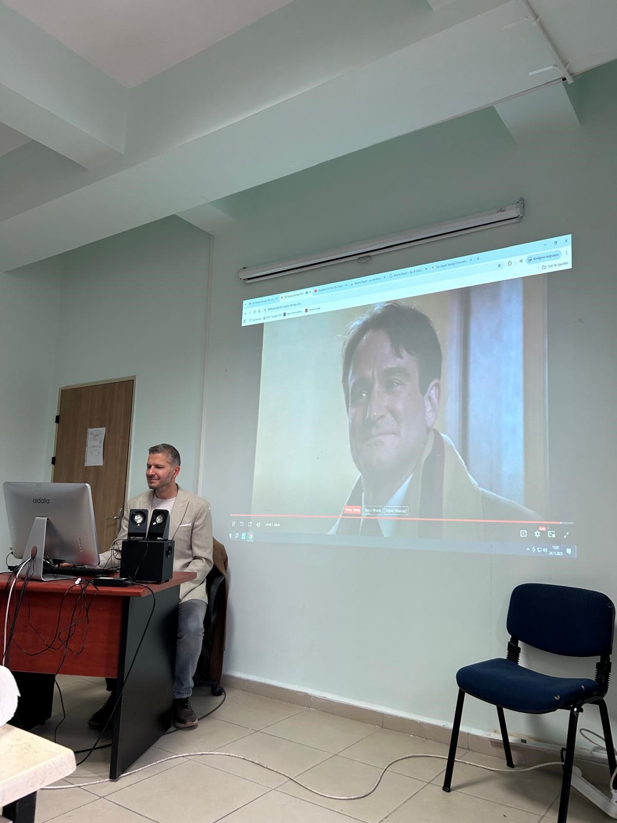 Kutlama oturumunun ardından, Mesleki Gelişim Birimi sorumlusu Öğr. Gör. Dr. Seçil Türköz tarafından düzenlenen etkinliğe geçilmiştir. Değerli misafirimiz Dağhan Dönmez rehberliğinde, eğitim ve mentorluk temalı "Ölü Ozanlar Derneği" filminin analizi yapılmıştır. Analiz sırasında, eğitim felsefesi, öğrenciye rehberlik ve yaratıcı düşünce gibi önemli pedagojik konular üzerine detaylı tartışmalar gerçekleştirilmiştir. Bu faaliyette, öğretim elemanlarımızın mesleki vizyonlarına yeni bakış açıları katılması hedeflenmiştir.